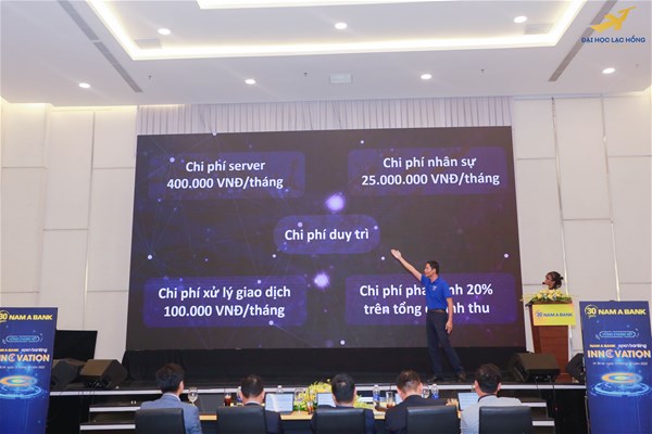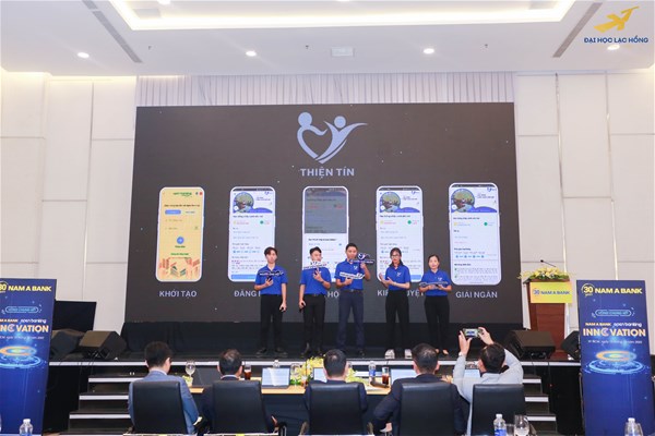 Bên cạnh những ý tưởng độc đáo về hệ sinh thái công nghệ, đội Thiện Tín LHU có màn tranh tài bùng nổ và tỏa sáng trên sân khấu, khuấy động cả khán phòng với sự “bứt phá” lột xác ngoạn mục, phong thái tự tin cùng những câu trả lời nhạy bén, trước sự cổ vũ nhiệt tình cùng tiếng reo hò của các bạn sinh viên với khẩu hiệu “ Đại học Lạc Hồng” càng tiếp thêm ý chí quyết tâm, vững tin và cháy hết mình trên sân khấu của các thành viên với phương châm “Quyết chiến - Quyết thắng”. Nhờ đó, Đội Thiện Tín LHU nhanh chóng đã chinh phục được Ban Giám khảo xuất sắc đạt giải Ba cuộc thi sáng tạo công nghệ Nam A Bank - Open banking Innovation (cuộc thi không có giải Nhất).