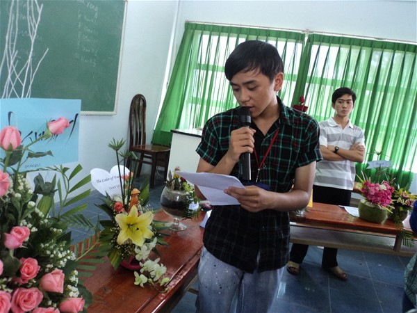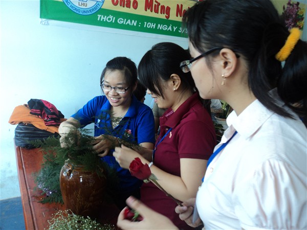 Vào lúc 10 giờ ngày 03 tháng 03 năm 2012, tại phòng D206, Đoàn - Hội sinh viên Khoa Ngoại Ngữ đã tổ chức thành công cuộc thi cắm hoa chào mừng ngày Quốc tế phụ nữ 8/3. Cuộc thi thu hút sự tham gia đông đảo của 10 đội thi đến từ các chi đoàn trong khoa với không khí vui tươi và hào hứng. Mỗi đội đều mang đến cho cuộc thi những tác phẩm hoa đầy màu sắc rực rỡ với nhiều chủ đề hấp dẫn. Ban tổ chức đã trao 1 giải nhất, 1 giải nhì, 1 giải ba, 2 giải khuyến khích cho 5 đội xuất sắc lọt vào vòng trong với phần thuyết trình đầy thuyết phục; đồng thời trao 5 giải phong cách cho các đội còn lại nhằm động viên tinh thần nhiệt tình tham gia các phong trào do Đoàn khoa phát động. Sau đây là một số hình ảnh của cuộc thi: