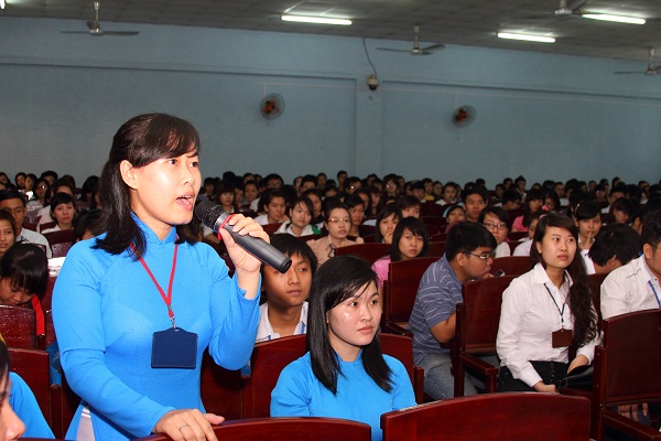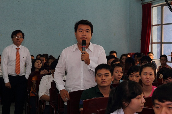 Bà Phạm Thị Thu (bên trái) và Bà Trần Thị Phương Quyên nhận được rất nhiều câu hỏi của sinh viên