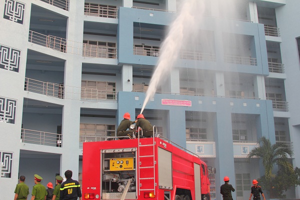 Đầu giờ chiều, gần 100 CB, GV, NV trong danh sách phân bổ của các đơn vị (mỗi đơn vị 5 đối tượng) đã tập kết tại sân cs2 để bắt đầu phần thực hành. Cạnh đó bộ phận tự quản và đội PCCC của Khu Nội trú sinh viên luôn tích cực có mặt trong các chương trình tập huấn của mọi năm.