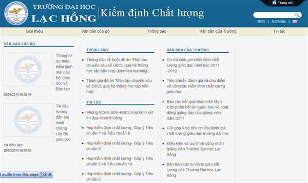 Thông tin về hoạt động kiểm định chất lượng tại trường được thể hiện qua Website