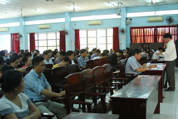 Qua buổi tập huấn, ThS. Lâm Thành Hiển – Phó Hiệu trưởng nhà trường đã trực tiếp phổ biến các nội dung trong quy chế thi, trong đó có trách nhiệm - tác phong của cán bộ coi thi, cán bộ giám sát phòng thi và các thành viên có liên quan khi thực hiện nhiệm vụ. Ngoài ra Thầy còn đặc biệt lưu ý cán bộ coi thi cụ thể về thời gian coi thi, quy trình hướng dẫn thí sinh thực hiện các môn thi trắc nghiệm, cách xử lý thí sinh vi phạm quy chế… tránh tình trạng sơ xuất làm ảnh hưởng chất lượng của kỳ thi.