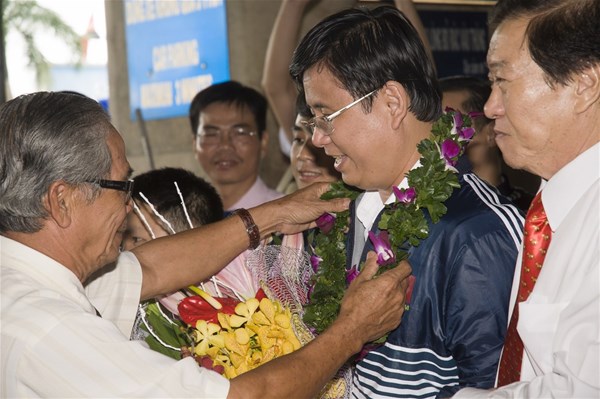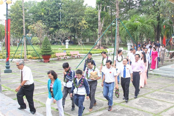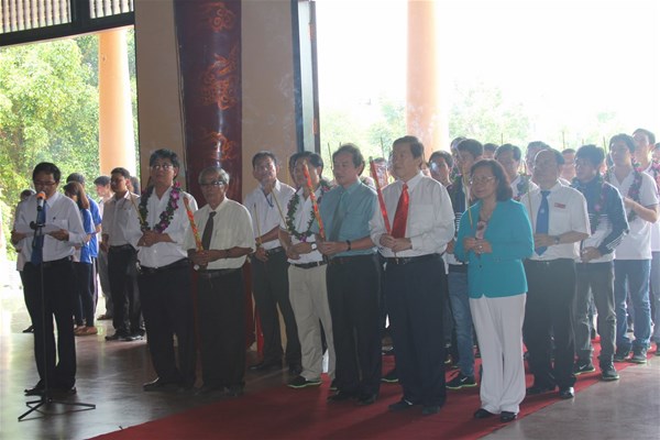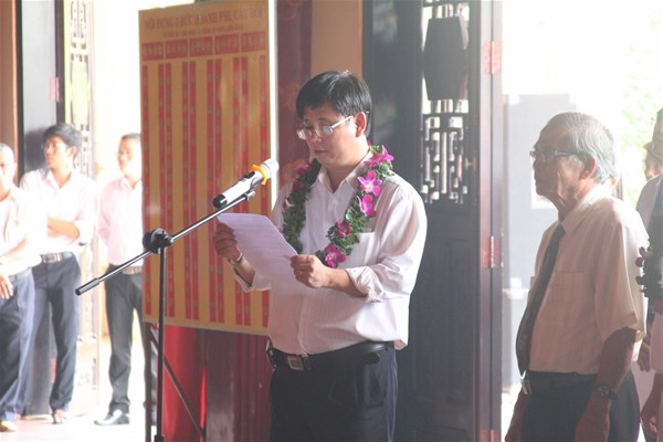 ThS. Lâm Thành Hiển đại diện đoàn thi đấu báo công tại Văn miếu Trấn Biên