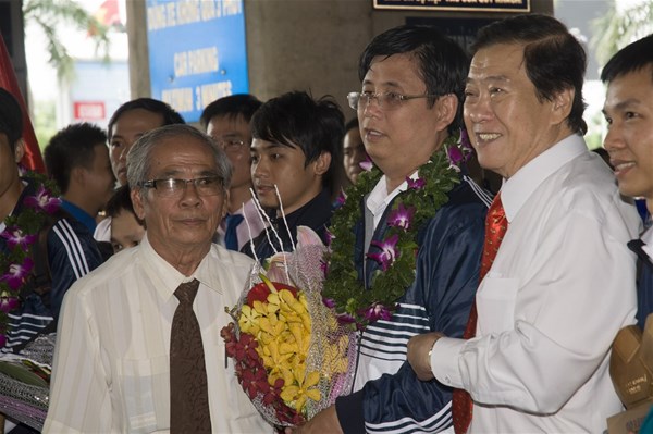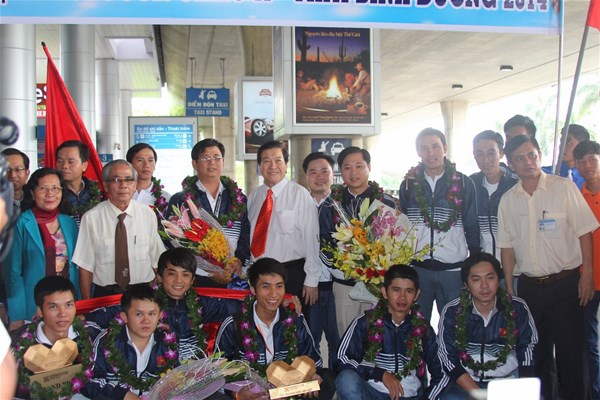 Sân bay Tân Sơn Nhất sáng nay ngập trong cờ hoa chào đón và chúc tụng đội tuyển mang cup vô địch vẻ vang về cho nhà tường, tỉnh nhà và quốc gia.