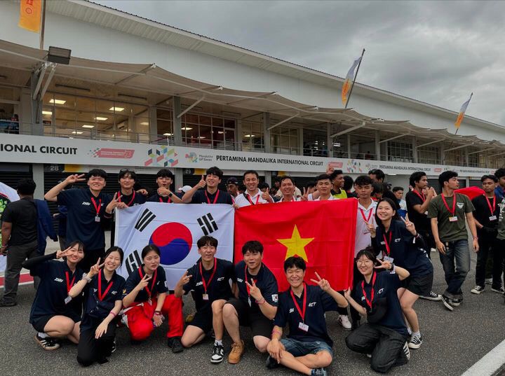 Các thành viên đội LH-EV Fuel Cell tại đường đua Indonesia.