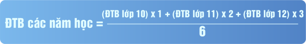 Trong đó, điểm trung bình lớp 10, điểm trung bình lớp 11, điểm trung bình lớp 12 là điểm trung bình cộng của tất cả các môn học được đánh giá bằng điểm số của từng năm học đó.