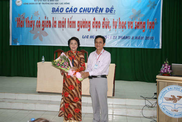 Sáng ngày 21 tháng 08 năm 2010, Ban Nữ Công, Công Đoàn cơ sở trường Đại học Lạc Hồng tổ chức buổi báo cáo chuyên đề “Mỗi thầy cô giáo là một tấm gương đạo đức, tự học và sáng tạo” do Tiến sĩ Vũ Thị Thanh Bình – Nguyên Phó Chủ tịch Công đoàn Giáo dục Việt Nam báo cáo.