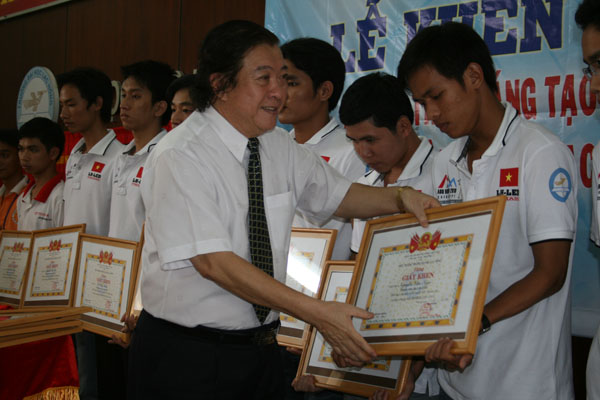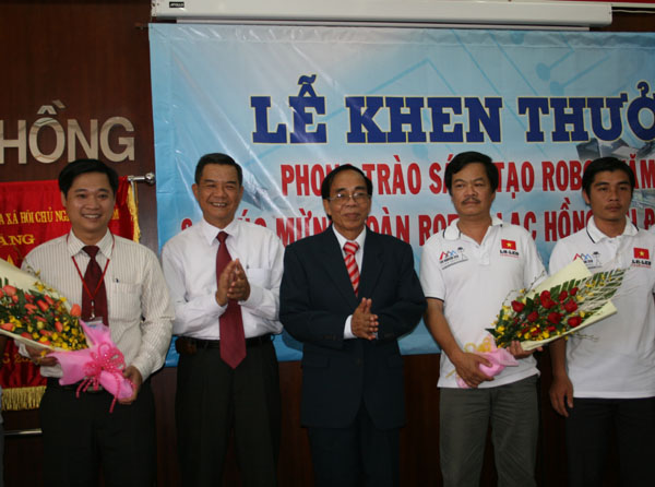 Các chỉ  đạo viên xuất sắc của phong trào Robocon nhận bằng khen của hiệu trưởng