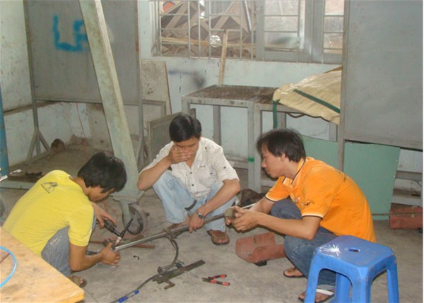 Thầy Đoàn Dương Quý đang hướng dẫn sinh viên chế tạo Robot